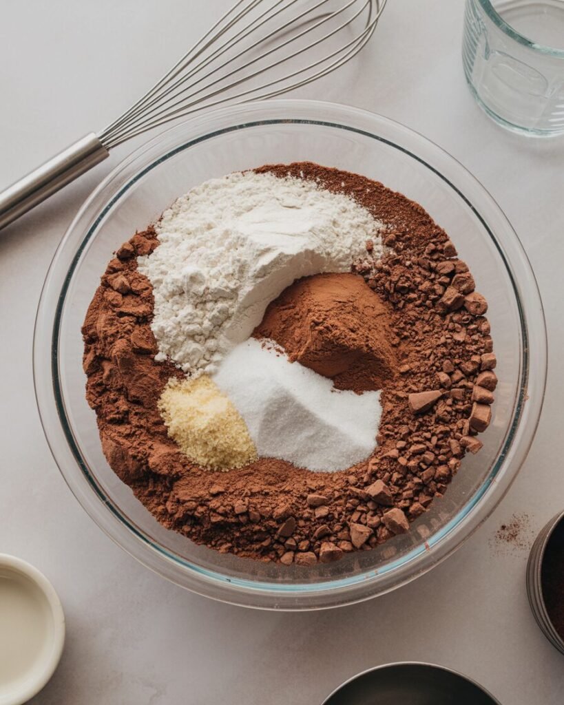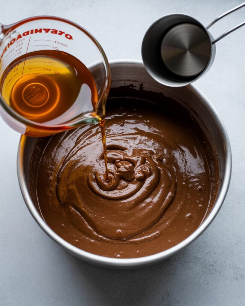 This combination gives the cake structure, moisture, and bold flavor — and makes it far more forgiving than butter-based or egg-foaming cakes.