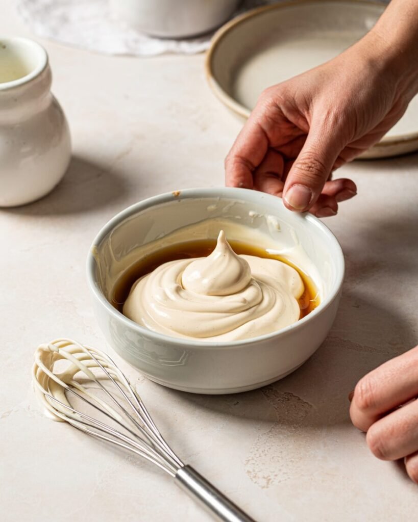 - Avoid this: Over‑whisking will make it too thin and watery.