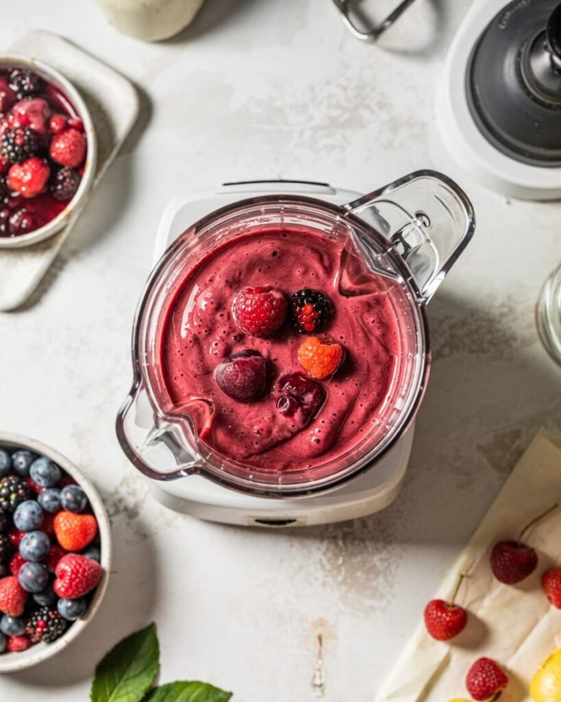 - Mixed berries (fresh or frozen) — 200 g (1½ cups) — flavor, natural color, and sweetness