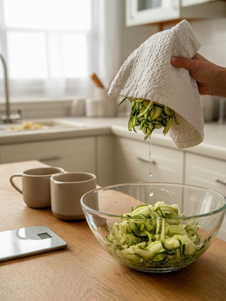 Squeeze zucchini thoroughly to prevent gummy texture.