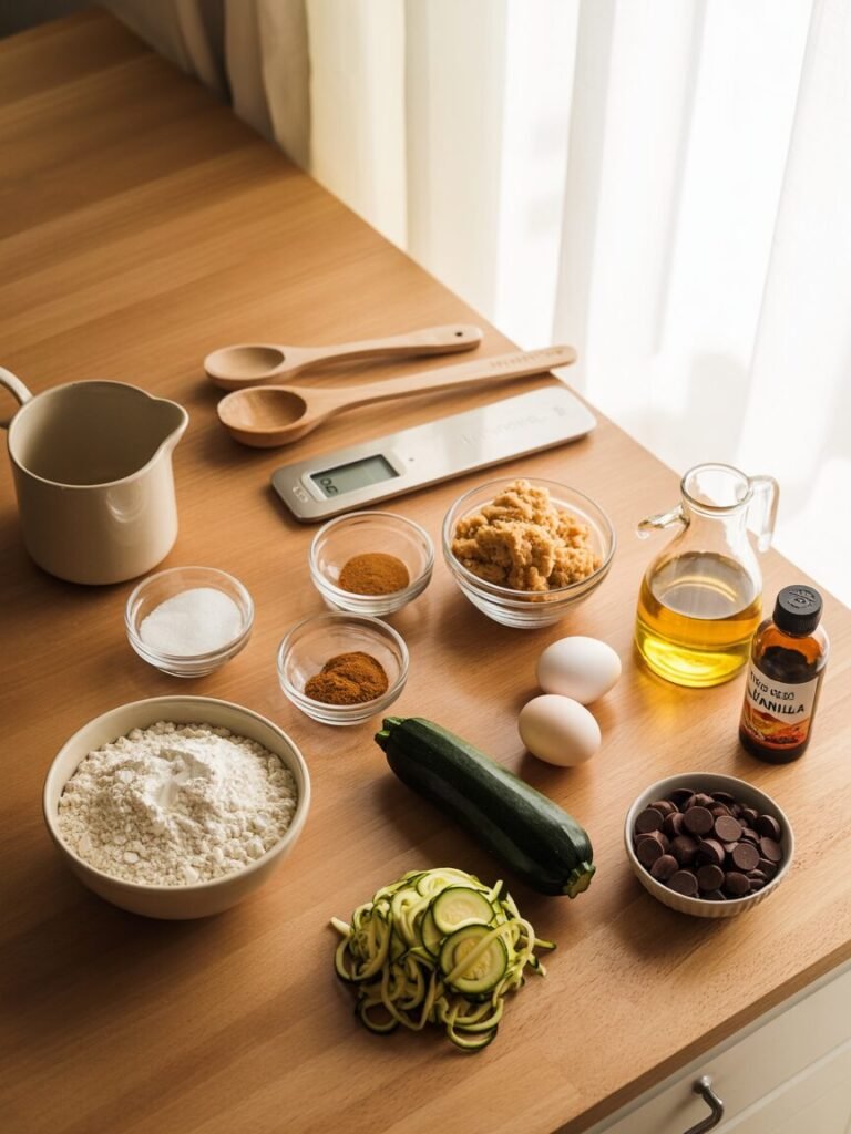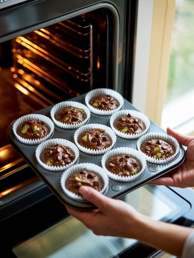 Visual cue: Batter is thick and shiny, with visible chocolate chips and zucchini flecks. Do not overmix.